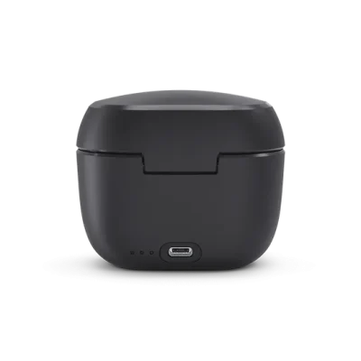 In the evening, simply place your hearing aids in the charger, and they will be ready for the next day. The charger is also equipped with a rubber base for stability and is shaped to accommodate different speaker lengths and earpiece types.