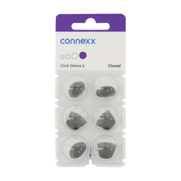 The anti-slip feature keeps the hearing aids securely in place at all times. There are two versions of Connexx Click Sleeves available a closed or a ventilated version.