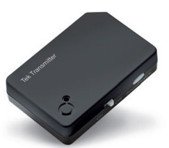 The Siemens Tek Transmitter is compatible with Siemens miniTek and easyTek streamers and connects to non-Bluetooth-enabled devices via AUX or RCA inputs.