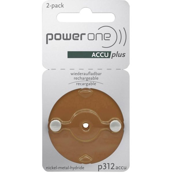 This product contains 2 rechargeable PowerOne AccuPlus 312 batteries.